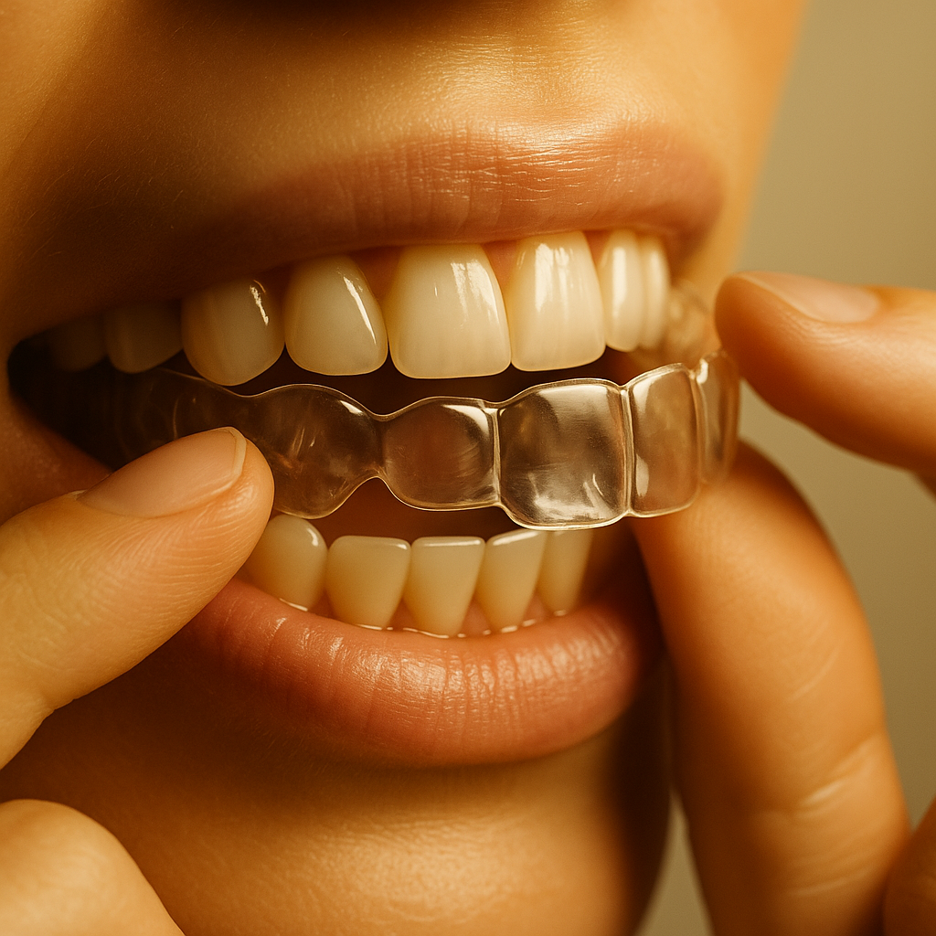 Kami menggunakan produk dental premium berstandar internasional seperti bahan komposit estetis, porcelain veneer berkualitas tinggi, aligner transparan berbasis teknologi 3D, serta bahan bleaching aman untuk gigi sensitif.