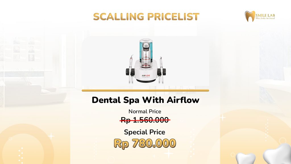 Dental Spa adalah perawatan pembersihan gigi yang lebih lembut, menyeluruh, dan nyaman dibanding scaling biasa. Prosedur ini membantu menghilangkan plak, menyegarkan mulut, dan memberikan pengalaman relaksasi sekaligus hasil kebersihan optimal.